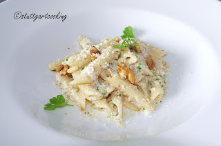 Meine Bärlauchgeschichte geht weiter. Gebackene Kartoffeln in der Folie, gefüllt mit einem Bärlauch-Quark gab es. Den Bärlauch-Quark verfeinerte ein gutes Olivenöl, es kam noch Salz und Pfeffer hinzu, das war es auch schon. Durch das pürieren vom Bärlauch mit dem Stabmixer bekam der Quark die schöne Farbe. Mit dem Messer klein gehackt tut es natürlich auch und schmeckt genau so gut! Bei dieser Geschichte ist das Olivenöl sehr wichtig, das ist die entscheidente Note zum Glücks-Quark :-)