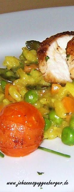 Alles Gemüse stammte ebenso von heimischen Anbauern, gekauft auf dem Stuttgarter Wochenmarkt. Die Zutaten für das Risotto stellte ich mir nach eigener Idee zusammen, die Körner mit dem Gemüse und dem Apfel zusammen hatte gepasst, der milde Curry hat das Risotto wunderbar abgerundet.